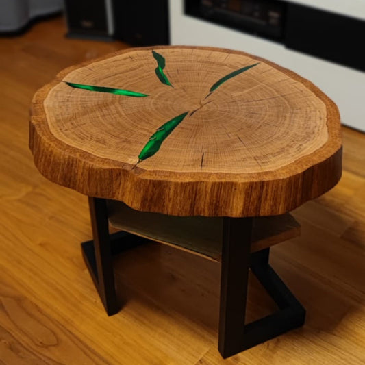 Epoxy Couch Tisch LED Wohnzimmer Beistelltisch Kaffee| Handmade Eichenholz Rund Nachttisch Konsole | Moderner River Epoxytisch Baumscheibe