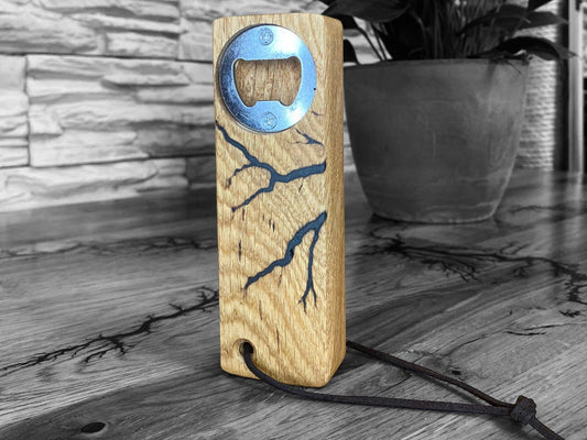 Flaschenöffner Holz Eiche Lichtenbergfiguren Geschenk Edel | Bottleopener Bieröffner Vatertag Männergeschenk