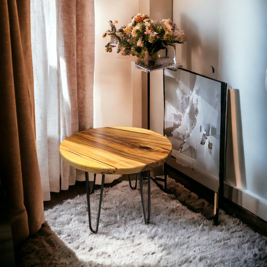 Exklusiver Beistelltisch aus Satinnussbaum | Handgefertigter Massivholz-Couchtisch mit Haarnadelbeinen | Einzigartiges Einzelstück