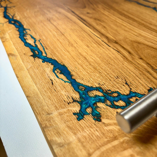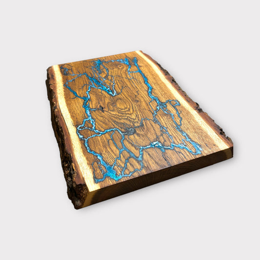 Sky Blue Lichtenberg Figur Epoxy Eichenholz Life edge Exklusives Design | Servierplatte | Käsebrett Jausenbrett Serviertablett
