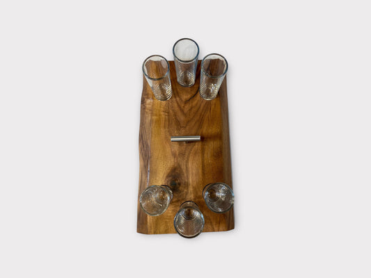 Nussholz Schnapsbrett Shotgläser Baumkante Shotglass Bar Männergeschenk Schnapsregal Nussbaum Schnapsglasbrett Schnapsbar Holz Bar