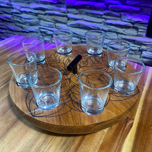 Schnapsglasdrehteller Eiche Holzbrett Shotgläser Mandala Lasergravur | Shotglass Gläser Männergeschenk Trinkspiel Schnapsglas Drehteller
