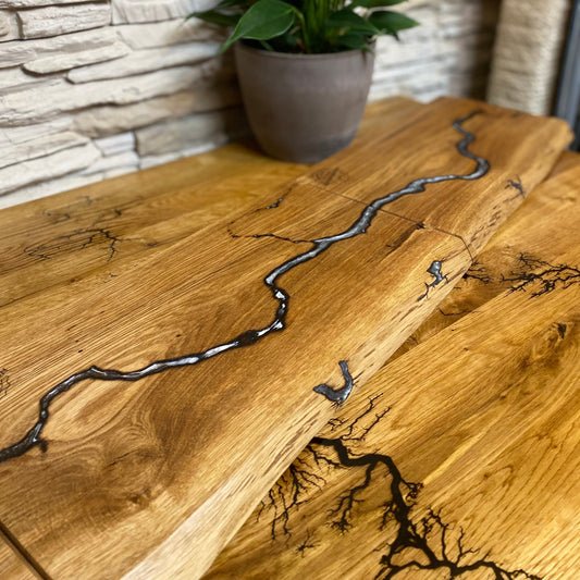 Schneidebretter aus Eiche mit Baumkante und eingebrannten Lichtenbergfiguren