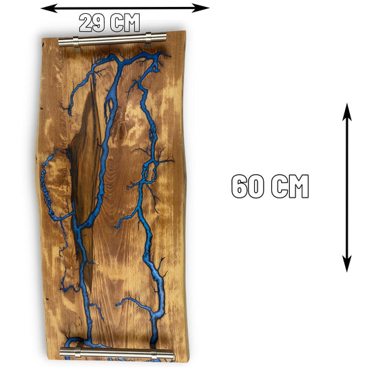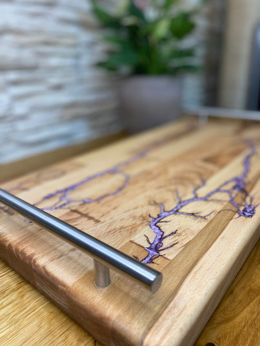 Serviertablett aus massivem Buchenholz mit Lichtenbergfiguren & Epoxidharz