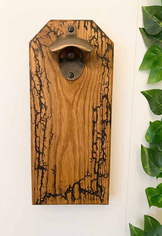 Flaschenöffner für die Wand mit Lichtenberg Figuren Magnetisch