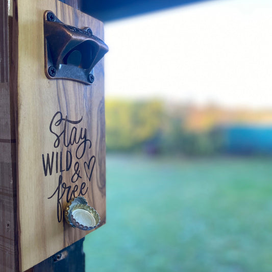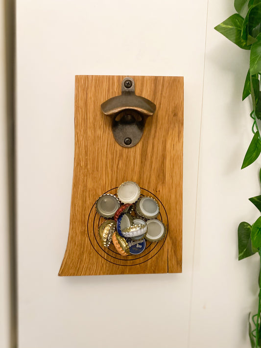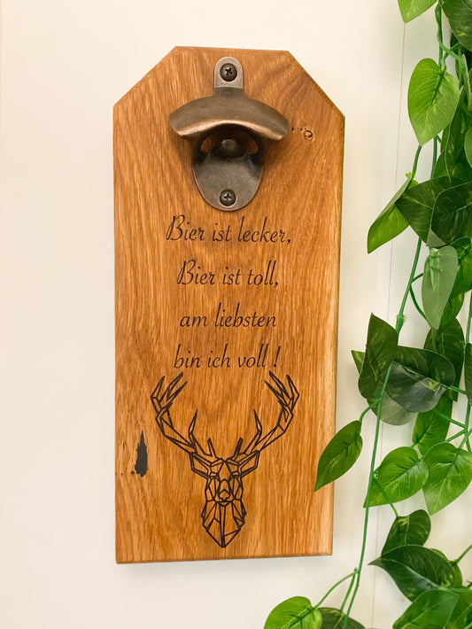Flaschenöffner aus massiver Eiche für die Wand Magnetisch inkl. Lasergravur