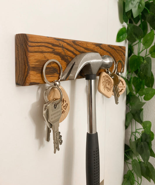 Magnetischer Schlüsselhalter für die Wand aus Zebrano Holz