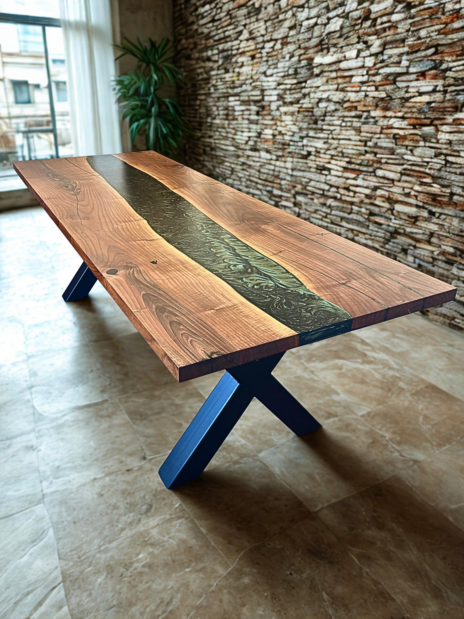 Handgefertigter Nussbaum-Holztisch mit Epoxidharz